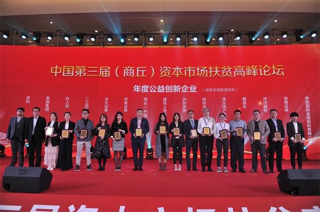 “年度最佳創(chuàng)新扶貧獎(jiǎng)”:貝店、本來(lái)生活、第一創(chuàng)業(yè)證券、東證期貨、國(guó)泰基金、華僑永亨銀行(中國(guó))、河南省豫東牧業(yè)開(kāi)發(fā)有限公司、嘉吉集團(tuán)、驢媽媽(景域集團(tuán))、民生證券、三六一度集團(tuán)、新力公益基金會(huì)、商丘市農(nóng)村信用社、銀河期貨、中原證券。