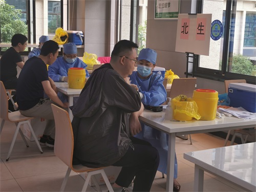 PS:咱們的管理者團(tuán)隊(duì)當(dāng)天也有積極參與疫苗接種哦~積極響應(yīng)國家號(hào)召,也為咱們員工做個(gè)榜樣,幾位管理者們率先接種了疫苗。下圖為公司董事長陳于冰先生接種疫苗中~