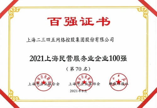 8月26日,由上海市企業(yè)聯(lián)合會(huì)、上海市企業(yè)家協(xié)會(huì)、上海市經(jīng)濟(jì)團(tuán)體聯(lián)合會(huì)和解放日?qǐng)?bào)社聯(lián)合主辦的上海百?gòu)?qiáng)企業(yè)評(píng)選結(jié)果發(fā)布。上海二三四五網(wǎng)絡(luò)控股集團(tuán)股份有限公司(以下簡(jiǎn)稱(chēng)“二三四五”,002195.SZ)榮獲上海民營(yíng)服務(wù)業(yè)企業(yè)100強(qiáng)、上海新興產(chǎn)業(yè)企業(yè)100強(qiáng)。